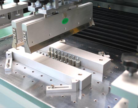 T1200D組合式印刷臺(tái)板有溝槽及定位PIN,設(shè)定簡(jiǎn)單、換裝迅速,適用于單面基板及雙面基板生產(chǎn)作業(yè);